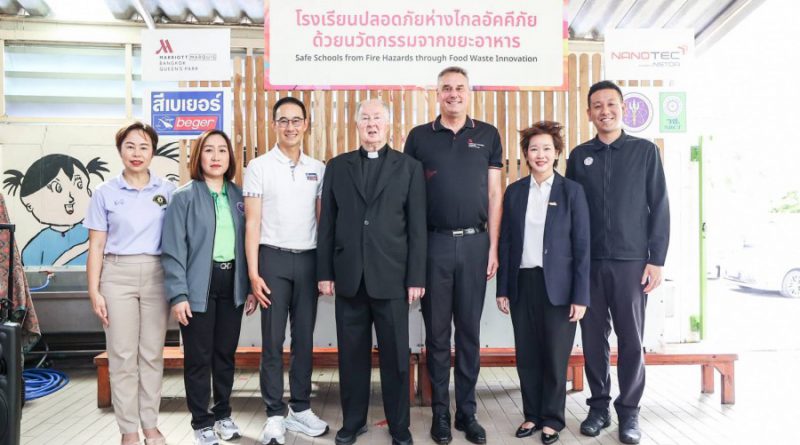 สำหรับโครงการ “โรงเรียนปลอดภัย ห่างไกลอัคคีภัยด้วยนวัตกรรมจากขยะอาหาร” เป็นการนำขยะอินทรีย์ของโรงแรมแบงค็อก แมริออท มาร์คีส์ ควีนส์ปาร์ค โดยเฉพาะเปลือกหอยนางรมเหลือทิ้งที่มีปริมาณมากถึง 1 ตันต่อเดือนจากห้องอาหารบุฟเฟ่ต์ โกจิ คิทเช่น และบาร์ มาร่วมวิจัยและพัฒนากับนาโนเทค สวทช. ในการพัฒนาเป็น “สารหน่วงไฟ” ที่ดสอบแล้วพบว่า มีสมบัติการหน่วงไฟตามมาตรฐาน UL94 V-0 ที่สามารถดับไฟได้เองภายใน 10 วินาที และไม่มีเปลวไฟหยด จากนั้น เกิดการต่อยอดกับพันธมิตรอย่างบริษัท เบเยอร์ จำกัดในการพัฒนา “สีหน่วงไฟ” ที่เหมาะสำหรับการทาภายในอาคาร โดยเฉพาะในชุมชนที่มีกลุ่มเปราะบาง ไม่ว่าจะเป็นเด็กเล็กหรือผู้สูงอายุ