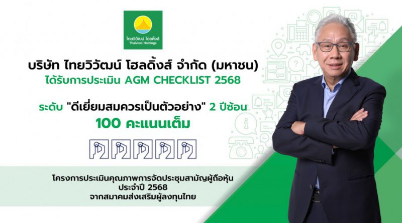 ไทยวิวัฒน์ โฮลดิ้งส์ การันตีธรรมาภิบาล คว้า 100 คะแนนเต็ม AGM Checklist ต่อเนื่อง 2 ปีซ้อน