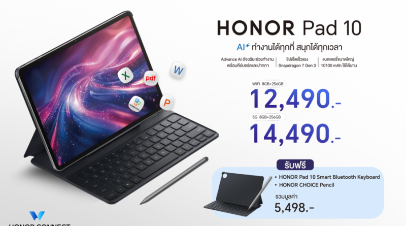 เปิดตัว! HONOR Pad 10 แท็บเล็ตสุดคุ้ม ยกระดับการทำงานและเรียนด้วย AI จอใหญ่ แบตอึด ชิปเซ็ตแรง พร้อมคีย์บอร์ด-ปากกา ในราคาเริ่มต้น 12,490 บาท
