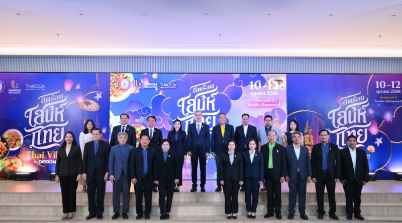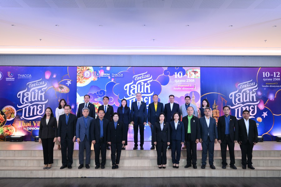 ‘ดีพร้อม’ ประกาศจัด มหกรรมดีพร้อมเสน่ห์ไทย : Thai Vibe by DIPROM โชว์กว่า 400 ร้านค้า ดันแบรนด์ไทยสู่ศูนย์กลางอาหารและแฟชั่นระดับโลก เดินหน้าขับเคลื่อนซอฟต์พาวเวอร์ไทยผ่านอุตฯ อาหาร-แฟชั่น ตั้งเป้าสร้างมูลค่าทางเศรษฐกิจ 250 ล้านบาท