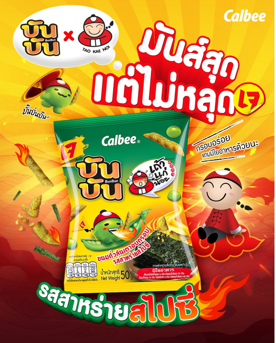 การร่วมมือกันครั้งแรกระหว่างสองบริษัทขนมยอดนิยม นำโดย บริษัท เถ้าแก่น้อย ฟู๊ดแอนด์มาร์เก็ตติ้ง จำกัด (มหาชน) ผู้นำตลาดสาหร่ายแปรรูปอันดับ 1 ของไทย แบรนด์ “เถ้าแก่น้อย“ ร่วมมือกับ บริษัท คาลบี้ธนาวัธน์ จำกัด ผู้ผลิตขนมถั่วลันเตาอบกรอบ ภายใต้แบรนด์ “บันบัน” ประกาศเปิดตัวขนมรสชาติใหม่ “บันบัน รสสาหร่ายสไปซี่” ผสมผสานความเข้มข้นของผงสาหร่ายจาก “เถ้าแก่น้อย” นำมาปรุงแต่งรสชาติเพิ่มความเผ็ดจัดจ้าน เข้ากับความกรอบ และรสสัมผัสที่เป็นเอกลักษณ์ของขนมถั่วลันเตาอบกรอบ “บันบัน” ขนมรูปทรงฝักถั่วที่เป็นเอกลักษณ์ พร้อมเครื่องหมาย “เจ” บนซองขนม เหมาะสำหรับผู้ที่มองหาขนมที่ปราศจากผลิตภัณฑ์จากสัตว์ และต้องการลิ้มรสความอร่อยรูปแบบใหม่ในเทศกาลกินเจ 2568 นี้
