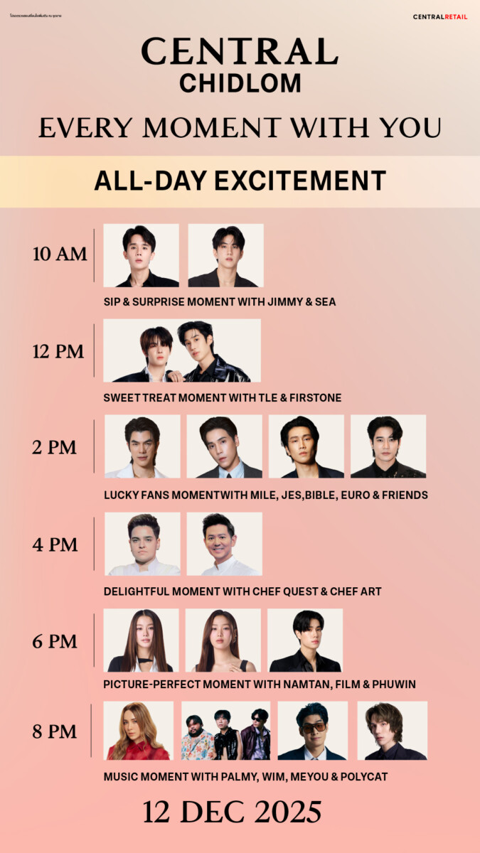 ห้างเซ็นทรัลชิดลม ‘The Store of Bangkok’ ในเครือเซ็นทรัล รีเทล จับมือพันธมิตร Mastercard, Central The1 Credit Card, CardX, UOB และ Samsung Galaxy ชวนมาสัมผัสโมเมนต์หลังการทรานส์ฟอร์มครั้งใหญ่กับงาน “Central Chidlom Every Moment With You” บิ๊กอีเว้นต์แห่งปีที่รวมดารา–เซเลบระดับท็อปมาให้แฟน ๆ ได้ใกล้ชิดแบบเอ็กซ์คลูซีฟตลอดทั้งวัน ในวันที่ 12 ธ.ค. 68 นี้!