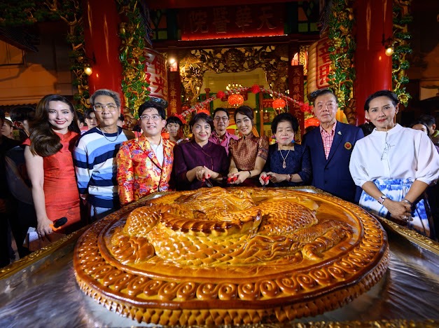 ประธานคณะกรรมการ มูลนิธิเทียนฟ้านักแสดงจาก Series Boys of Gods อาลิซาเบธ แซ๊ดเลอร์ ลีนานุไชย ดร. คฑา ชินบัญชร พรีเซนเตอร์ โครงการเที่ยวไทยรับพลังบวก ผู้เชี่ยวชาญด้านประวัติศาสตร์ ศาสนาและวัฒนธรรมจีน เป็นผู้ นำไหว้ฟ้าดินขอพรพระจันทร์และองคเ์ทพเย่โหล่ว (ผูเ้ฒ่าจนั ทรา) พร้อมร่วมกันตัด ขนมไหว้พระจันทร์ใหญ่ที่สุดในประเทศไทย
