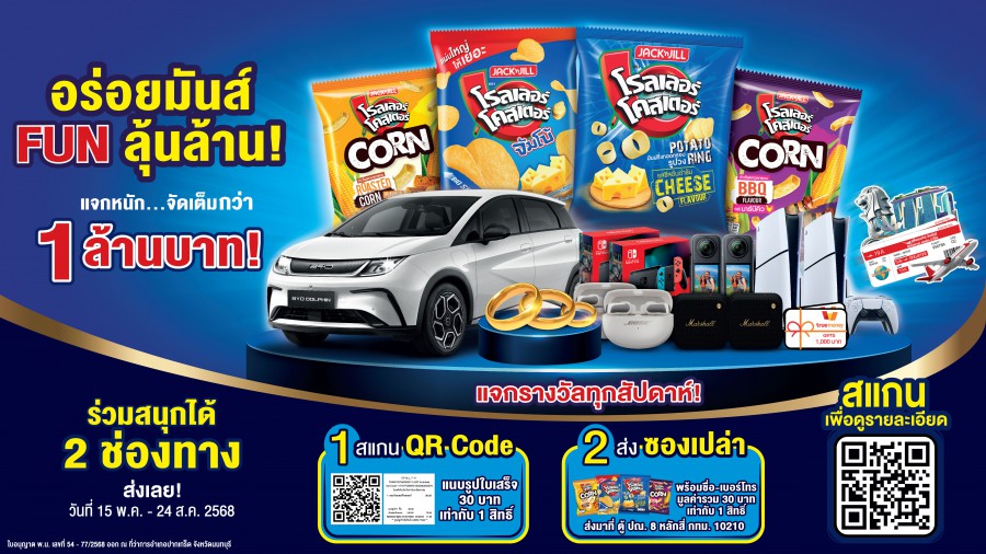 สำหรับแคมเปญ โรลเลอร์ โคสเตอร์ อร่อยมันส์ FUN ลุ้นล้าน! แจกหนักทุกสัปดาห์ จัดเต็มของรางวัลสุดฮิตเอาใจเด็ก Gen Z มากถึง 70 รางวัล มูลค่ารวมกว่า 1 ล้านบาท ลุ้นเป็นเจ้าของรางวัลสุดปังได้ง่ายๆ ตั้งแต่ 15 พฤษภาคม 2568 – 24 สิงหาคม 2568