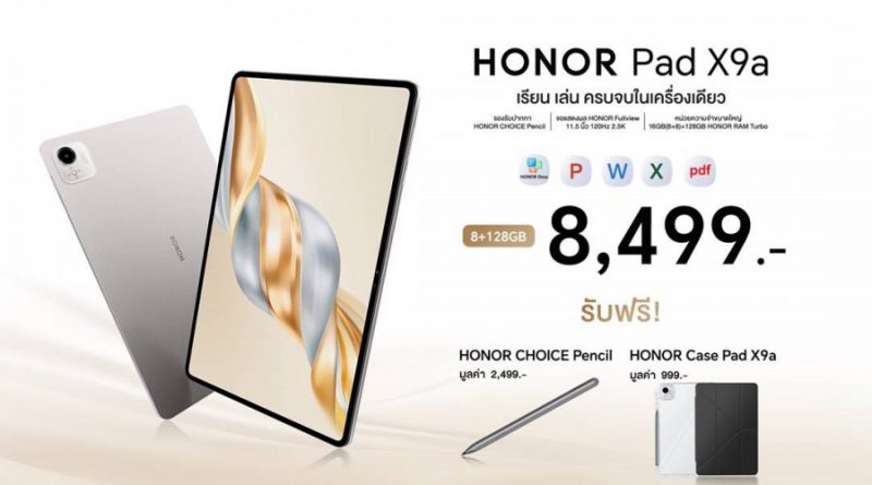 เปิดตัว! HONOR Pad X9a แท็บเล็ตจอใหญ่ มอบประสบการณ์ระดับพีซี รองรับปากกา พร้อมใส่ซิมโทรเข้าออกได้ ฟังก์ชันครบ ในราคาเพียง 8,499 บาท