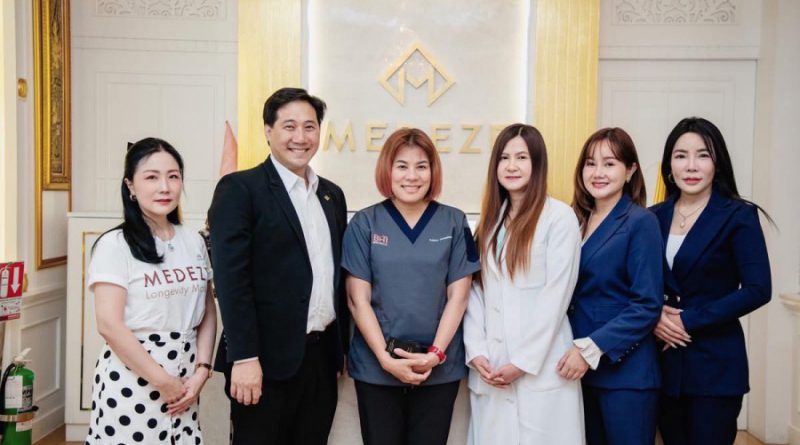 นายแพทย์วีรพล เขมะรังสรรค์ (ที่ 2 จากซ้าย) ประธานเจ้าหน้าที่บริหาร นางสาวดนิตา พิทักษ์เนติกุล (ที่ 1 จากซ้าย) ประธานเจ้าหน้าที่สายพัฒนาธุรกิจ บริษัท เมดีซ กรุ๊ป จำกัด (มหาชน) “MEDEZE” ให้การต้อนรับ พญ.กุลกานต์ อมรพัฒนา (ที่ 3 จากซ้าย) CEO of Best Hair Icons (BHI) Clinic & Leading Hair Transplant Surgeon ในโอกาสเข้าเยี่ยมชมบริษัท พร้อมแลกเปลี่ยนวิสัยทัศน์และหารือเชิงลึกเกี่ยวกับแนวทางการพัฒนาองค์ความรู้ โดยได้เข้ารับฟังเรื่องการจัดเก็บเซลล์รากผม เทคโนโลยีแแช่แข็งเซลล์รากผมแห่งแรกในเอเชีย มีนวัตกรรมล้ำสมัยที่ออกแบบโดยเฉพาะ ณ บริษัท เมดีซ กรุ๊ป จำกัด (มหาชน) สำนักงานใหญ่ พุทธมณฑลสาย 4
