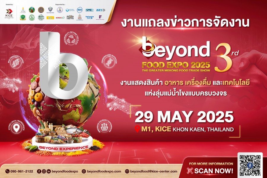 30 พฤษภาคม 2568 – ขอนแก่น, ศูนย์การประชุมและแสดงสินค้านานาชาติไคซ์ หรือ ศูนย์ประชุมไคซ์ฯ ขอนแก่น ภายใต้การบริหารงานของ บริษัท ซี.พี. แลนด์ จำกัด (มหาชน) หรือ CP LAND ได้แถลงข่าวการจัดงาน Beyond Food Expo 2025 อย่างเป็นทางการ ซึ่งปีนี้นับเป็นปีที่ 3 ของการจัดงานถือเป็นอีกก้าวสำคัญในการผลักดันจังหวัดขอนแก่นและภาคตะวันออกเฉียงเหนือให้ก้าวขึ้นเป็นศูนย์กลางอุตสาหกรรมอาหารระดับนานาชาติ ในขณะที่การท่องเที่ยวเชิงอาหาร (Gastronomy Tourism) กำลังเติบโตอย่างต่อเนื่อง การจัดงานในครั้งนี้ยังสอดคล้องกับนโยบายของ การท่องเที่ยวแห่งประเทศไทย (ททท.) ที่มุ่งผลักดันให้ วัฒนธรรมอาหารและอัตลักษณ์การกินของภาคอีสานกลายเป็นจุดหมายปลายทางใหม่ของนักท่องเที่ยวทั่วโลก