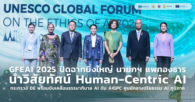 กรุงเทพฯ–ประเทศไทยประสบความสำเร็จอย่างยิ่งใหญ่ในการเป็นเจ้าภาพจัดการประชุมระดับโลก “The 3rd UNESCO Global Forum on the Ethics of AI 2025 (GFEAI 2025)” ระหว่างวันที่ 24–27 มิถุนายน 2568 ณ โรงแรมเซ็นทาราแกรนด์ เซ็นทรัลเวิลด์ กรุงเทพมหานคร โดยมีผู้นำ นักวิชาการ และผู้แทนจากกว่า 100 ประเทศทั่วโลก มากกว่า 1,000 คน ร่วมแลกเปลี่ยนมุมมองและออกแบบทิศทางการพัฒนา AI ที่มี “จริยธรรม โปร่งใส และยั่งยืน” พร้อมเปิดฉากเดินหน้าศูนย์ AI Governance Practice Center (AIGPC) ดันไทยสู่ศูนย์กลางจริยธรรม AI ระดับภูมิภาค ภายใต้การนำของ นางสาวแพทองธาร ชินวัตร นายกรัฐมนตรี และนายประเสริฐ จันทรรวงทอง รองนายกรัฐมนตรีและรัฐมนตรีว่าการกระทรวงดิจิทัลเพื่อเศรษฐกิจและสังคม
