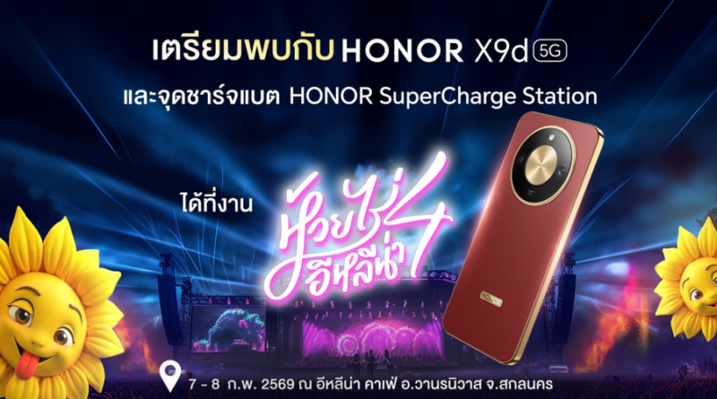 NEWS UPDATE กุมภาพันธ์ 6, 2026 ABC News HONOR ร่วมสนับสนุนงาน “ห้วยไร่ อีหลีน่า Festival ครั้งที่ 4” ชวนดื่มด่ำเทศกาลดนตรีและสัมผัสประสบการณ์ความแกร่งกับสมาร์ตโฟน HONOR X9d 5G 4 กุมภาพันธ์ 2569, ก Read More