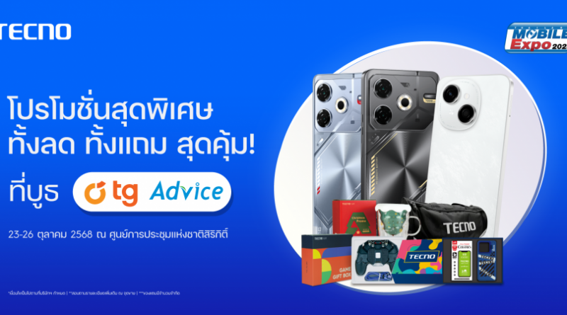 NEWS UPDATE ตุลาคม 22, 2025 ABC News TECNO เล่นใหญ่ โชว์นวัตกรรม AI ล้ำสมัยแบบครบครัน พร้อมโปรโมชั่นมากมายในงาน Thailand Mobile Expo 2025 ระหว่าง 23-26 ต.ค.นี้ ณ ศูนย์การประชุมแห่งชาติสิริกิติ์ กรุงเทพฯ – TECNO แบ Read More
